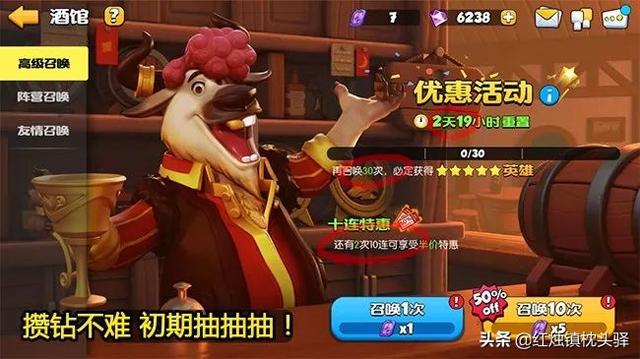 而且游戏中,每隔3天,会开放一次10连的5折优惠。玩家可以5折价格进行2次10连,而如果连续抽满30次,还可以必然得到一张5星卡牌。算起来,抽卡优惠力度还是不错了。