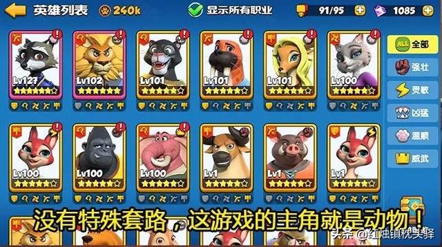 目前游戏中,共开放了27种动物,另外有战士、法师、刺客、游侠、骑士5个职业。动物和职业搭配,共有135张角色卡供玩家搜集。