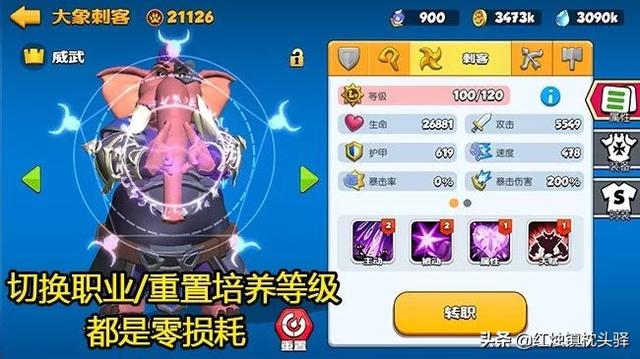 又比如不少玩家前期各种换服刷初始号想刷到的大象卡。大象的种族天赋是“死亡时,保留1点伤害,免疫所有技能1回合”。