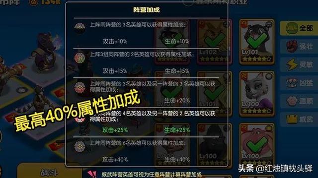 欧皇或氪金虽然《欢乐大作战》的技能搭配组合看起来十分丰富,但游戏内置的“阵营加成”系统对这块增加了一些限制:组合相同阵营的动物能获得最高达40%的攻击以及生命加成。