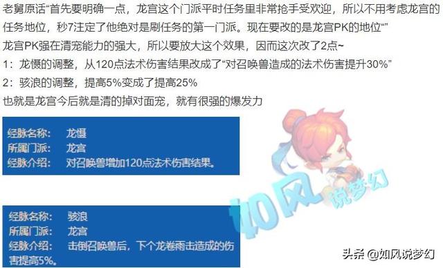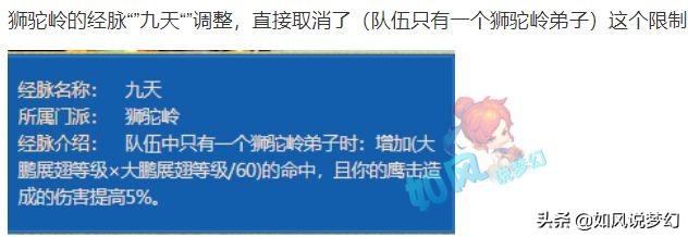 4月大改与往常一样,还是主要调整门派的经脉,整体的调整内容如下图: