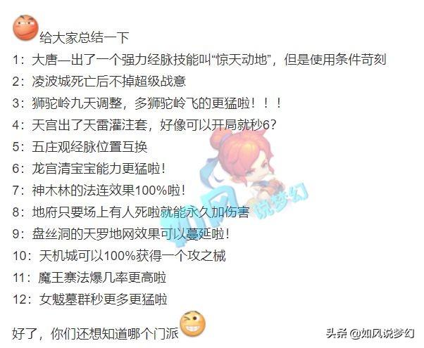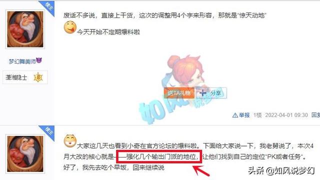 每次游戏在门派调整或出新资料片前,梦吧一个神奇的ID“梦幻舞美师”就会出来爆料,关于4月大改,核心就是“强化几个输出门派的地位”!