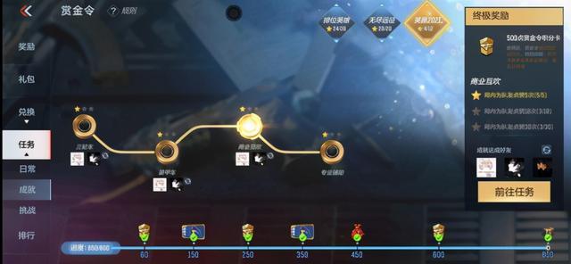至于排位赛取胜就要看小伙伴们的实力啦,我觉得组队匹配30局游戏的时候,基本上就已经能完成这些任务了,这些任务只要全部开通一星就可以领取500点的积分卡,小伙伴们要注意的是,这些任务一共会给500点赏金令积分卡,不是每个任务都给500点赏金令积分卡哦,所以每个任务打满一星就可以领取啦。