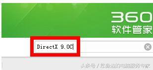 3、在搜索栏中搜索游戏环境所需的“Directx 9.0c”下载安装。