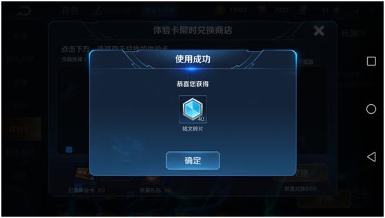 不过有召唤师吐槽说这些英雄和皮肤都有了,兑换来也没用啊,不过就是5钻石或者15钻石,太鸡肋了,换了几个才够一次钻石夺宝的。其实体验卡限时兑换商店中还有惊喜礼包和幸运礼包,活动期间限量兑换50个,大部分召唤师们兑换也是为了获得铭文碎片(没有体验卡的召唤师就忽视吧)。