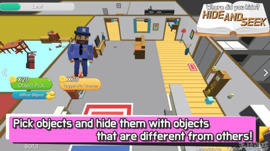 以为一看游戏名字就和想象中那种躲在暗处窥视的躲猫猫一样吗?那就错了。在游戏里玩家能变成各种各样的物品,比如书,垃圾桶,电脑等等符合当前地图特点的物品来进行伪装,然后看着人型玩家找不到你焦头烂额的样子而窃喜。