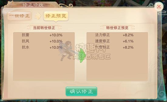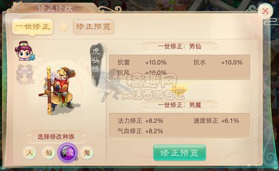 2、窗口的左边可以选择种族,右边的上面一栏显示当前的修正,下面显示更改后的修正,确定好后点击修正预览;