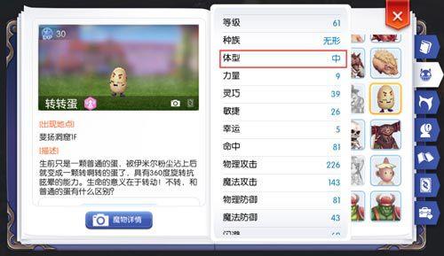 魔物体型分为小型,中型,大型三种,使用相机对着魔物拍照,解锁魔物详情,可在冒险手册中查看,了解了各魔物体型后,我们就能快速找到最适合的武器。