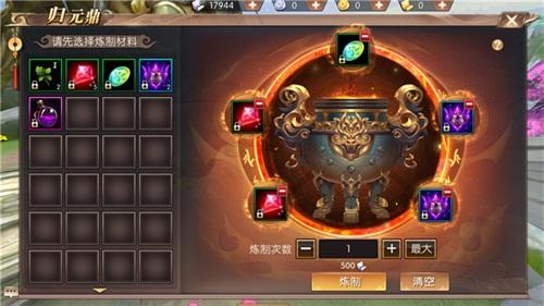 在我们的背包中,总有一些闲置物品,用不上弃之又可惜,本次版本更新后,天命者可将这些闲置物品放入归元鼎炼化,即可变废为宝,匪夷所思的奇珍异宝都可以炼化出来。合成材料可以分组,合成产物也可以分组,归元鼎会根据合成的材料及配方随机生成合成结果,有一定几率炼化出稀有物品哦。