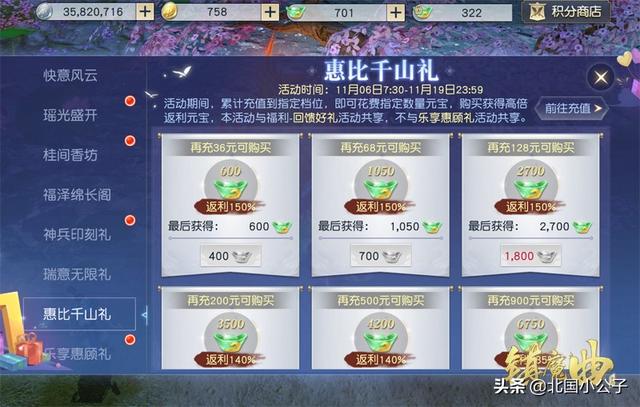 “瑶光盛开”、“惠比千山礼”、“福满多多礼”、“青云直上礼”等多重返利活动也同步开放,福利众多,双十一没抢到的,这里都能“剁”个痛快!