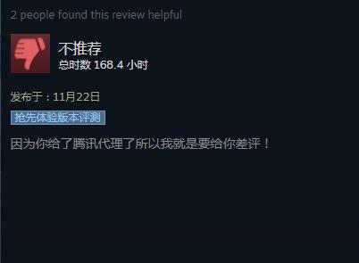 然而就在这些消息出现后,Steam却出现了一些很不和谐的声音,许多玩家都因为腾讯代理吃鸡而刷差评。