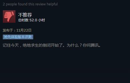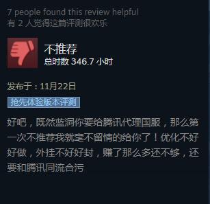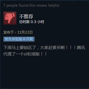 这许多声音真是让人头皮发麻,虽然所腾讯之前的不光彩很多,但是这些玩家忽略掉了稳定的服务器和外挂的打击问题,只把队腾讯的刻板印象带到了问题上,这样就更僵硬了吧,如此任性的使用评论,也只能是一声叹息了,更何况有多少人库里就只有这一款游戏呢,压根就是Steam的过客还来硬装一下核心玩家,让人唏嘘不已。