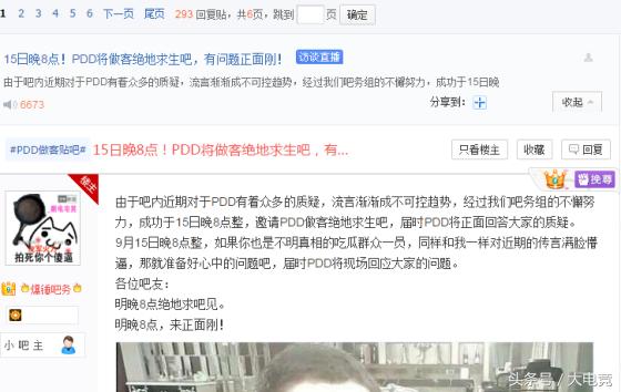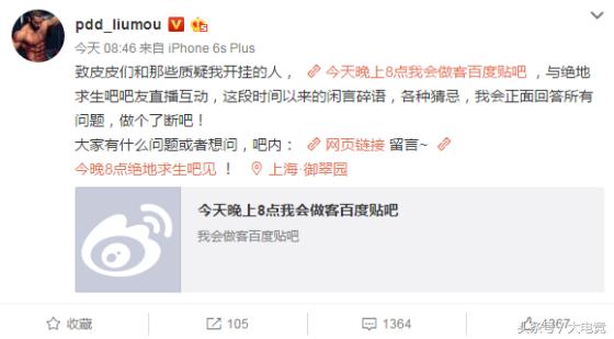 近日英雄联盟知名主播PDD在玩绝地求生时被网友质疑开了外挂,还公布出了视频。不过对此PDD予以否认并在三天前直播中亲自解释了一番,但是似乎并没有什么太大效果还是有人在质疑。于是PDD在今天宣布将在今晚直播回答网友在贴吧的提问。