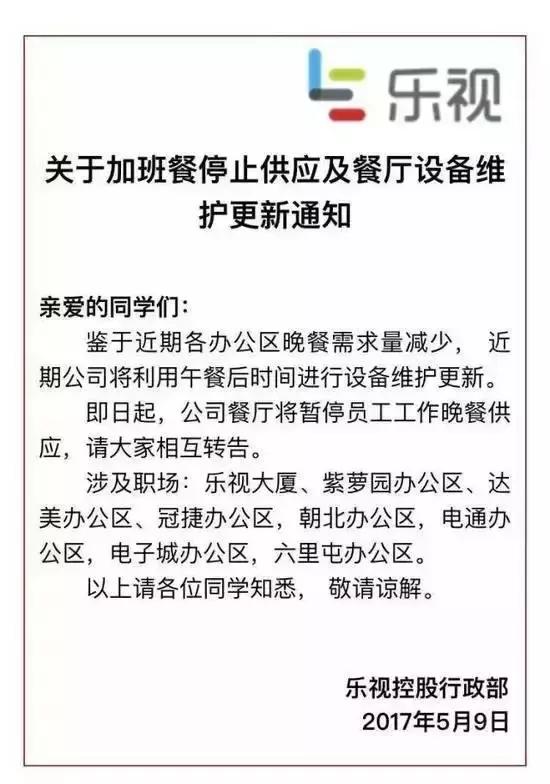 1、乐视已暂停为员工提供晚餐和班车
