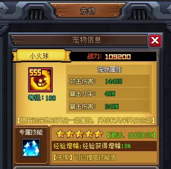 第一只“小火球”。经验增幅18%,升级那是轻轻松松。有的小伙伴可能要说了杀死一个怪18%的额外经验有啥用?对,杀一个怪是没用,但是如果杀10,100,1000,上万个呢?到底有没有用大家一看便知。当然了小编这只小火球是满等级,满阶的,增幅是最大化,不过就算你的不是满等级,满阶,和小编这一只也差不了多少。