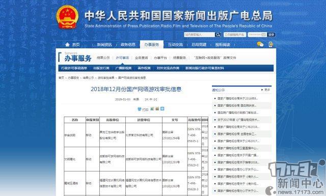1月9日,国家新闻出版广电总局官网在2018年12月公布的第一批过审游戏清单的基础上,增加了新一批游戏。此次共有84款游戏获得版号,其中绝大部分均为手游,仅有1款端游和1款页游。