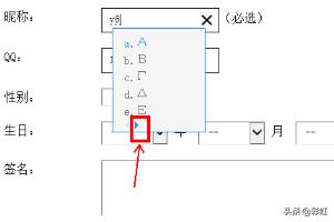 1、打开个人资料页面,进行昵称的编辑。在昵称输入框中输入“v6”,rán后在弹出来的选项中点击如图所示图标。