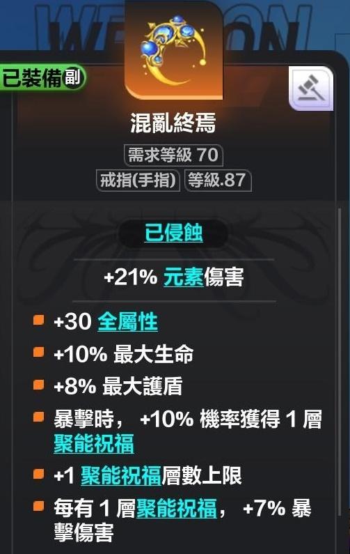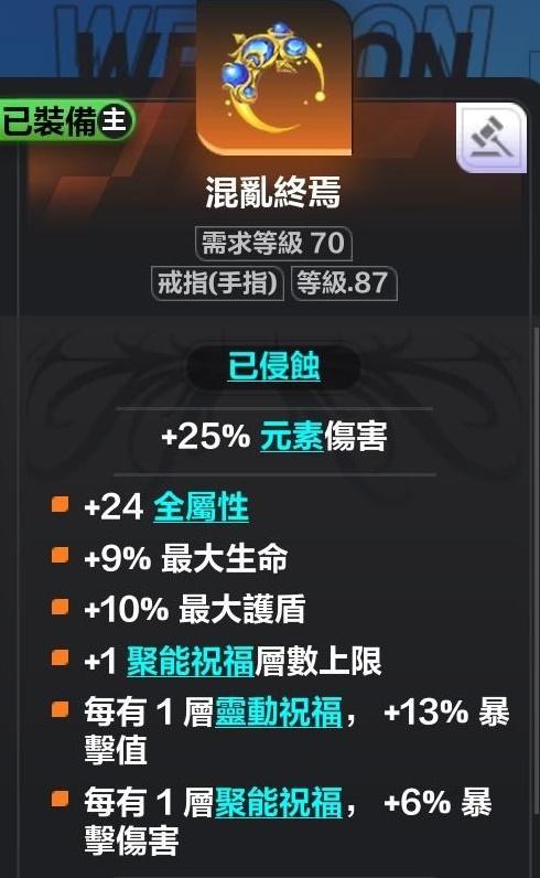 前缀的元素点伤,可以换成不祥的法术+3等级,会比元素减抗更好一些
