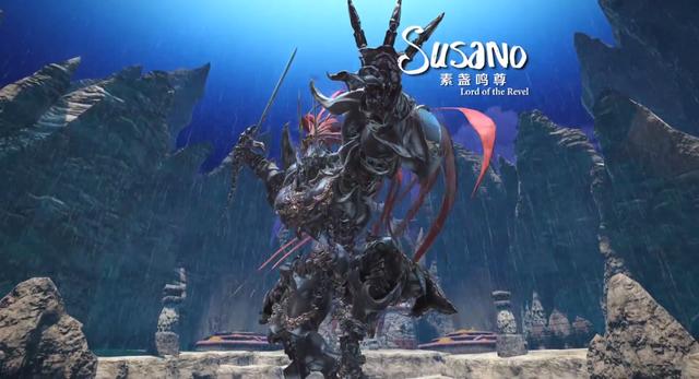 相传须佐之男曾用计智取以活人为食的八岐大蛇,并从它的尾巴里剖出了神器"天丛云剑",《最终幻想14》一向以精彩酷炫的副本演出而著称,须佐之男也不例外,在BOSS转阶段时,豪神化为潜入海中,化为巨人形态,拔出"40米大刀"形态的天丛云,砍向玩家,进入刺激的QTE环节,视觉效果极为震撼!