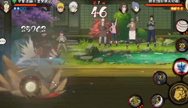 【普攻详解】 千手纲手的普攻平a共分为五段,带有击飞效果。普攻速度算的上很快,且伤害较高,很容易进行连击,正常的话不接技能都可以打满五套平a才会触发落地保护,稳定性可以说是非常高了。