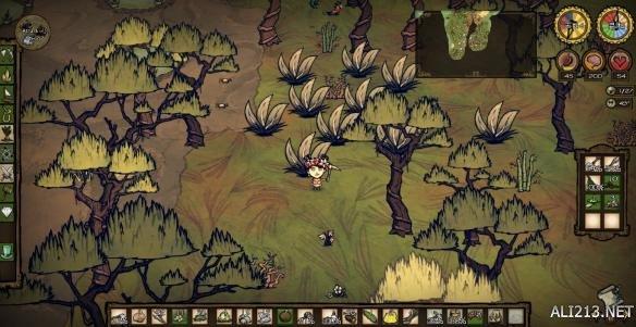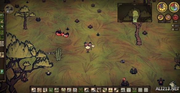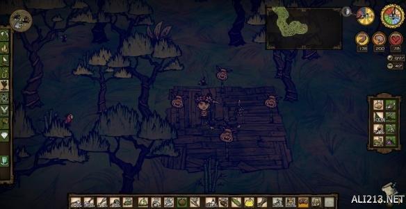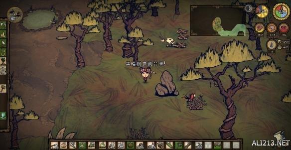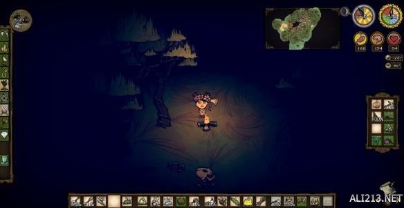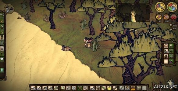 科普:海难的金矿比较少,取代的是熔岩金矿,要铲子挖。金矿一般在树林的地形,就是上图显示的环境啦,饥荒世界里第一块金子是很关键的,可以解锁很多急需的物品,海难里面要解锁的大致有以下几样,个人观点