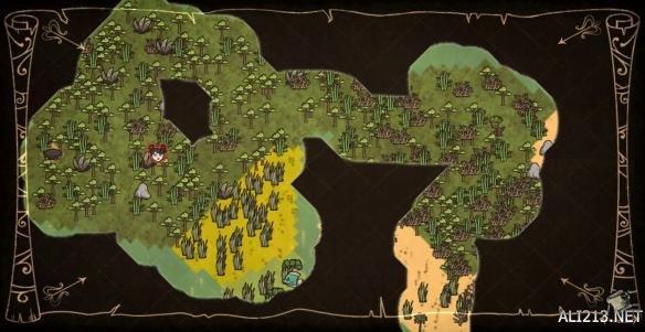 (科普:恶魔花彩蛋,整个岛上都是恶魔花,一般与沼泽地形相连,可以根据这个规律找芦苇、鱼人、水池等资源)