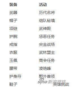 为了让各位大侠少走弯路,特归纳总结的“活动对应获得装备”攻略表,希望对大家有所帮助。