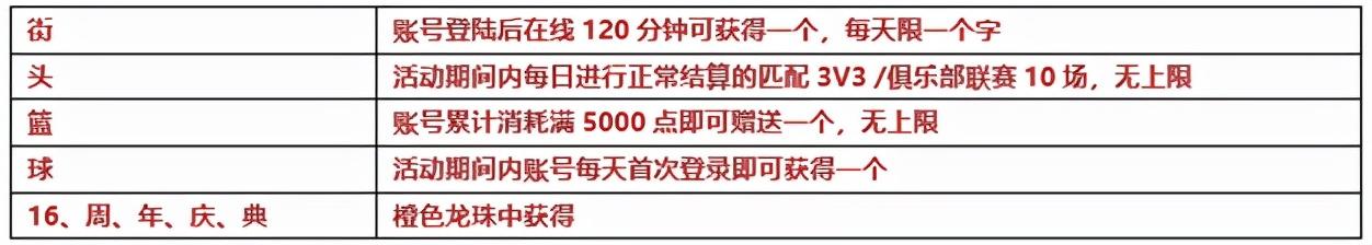 12月2日服务器维护后~12月16日服务器维护前,活动期间内通过不同途径获得不同“字”,可以兑换相应的奖品本次活动以账号为单位进行。截止至2021年12月16日维护时未接收以及未兑换的字将会被删除。