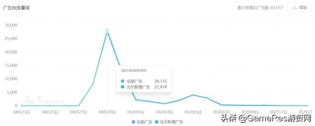买量情况:据AppGrowing显示,该游戏选择在29日当天集中轰炸,仅靠一日买量就冲上了4月买量榜单第11的位置。