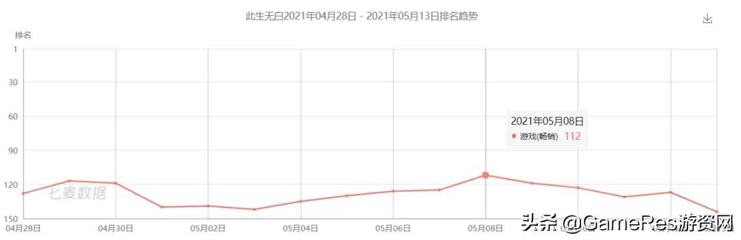 《此生无白》iOS游戏畅销榜走势,数据来源:七麦数据