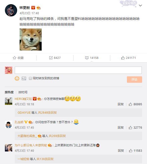 由此可见,林更新对辣条是多么的热爱啊。因此我们呼吁,所有的四川辣条厂商,赶紧来邀请林更新为辣条代言吧。