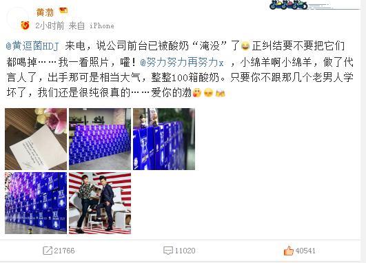 据说,张艺兴赠送的牛奶把黄渤公司的门都堵上了