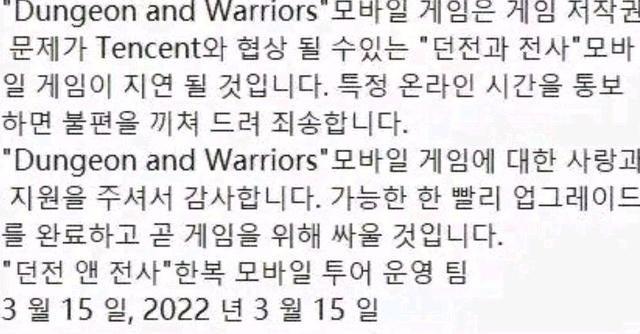 然而,就在这个即将开始的时刻,有朋友在网上发帖称:韩服在昨天的最新公告中指出,地下城手游又延期了。