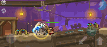 本作的操作并不复杂,左摇杆移动,右边按钮攻击、跳跃以及释放技能。有一点姬友们要注意下,人物是支持左摇杆下蹲防御的,而且防御是你过关的神技之一,一定得学会使用哦。