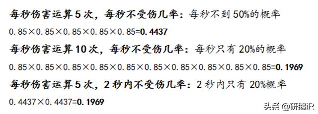 渐行渐远的基础属性——命中、躲闪。命中和躲闪这两个基础属性是大家最为关心和重视的属性,但是命中和躲闪的几率提升,远没有想的那么简单,尤其到后期,提升一点触发几率就需要巨大的数值支持,所以命中和躲闪不建议大家堆太高的数值。在当前版本闪避属性已经在大幅度走下坡路,首先越来越多的必然技能出现,在后续更高级别的版本中,为了提升技能的强度,必然命中作为一个很重要的依据,必然会出现在各个职业的技能当中,其次随着玩法的不断增多(最近新出的玉灵、玄印),不论是每秒的伤害计算次数还是伤害数值都在不断增加,在提高闪避率需要付出巨大数值的情况下,现有的闪避率已经很难发挥效果了。如果每秒伤害计算为5次,每次受到伤害时有85%几率触发闪避,那么这一秒不受伤的几率是多少?
