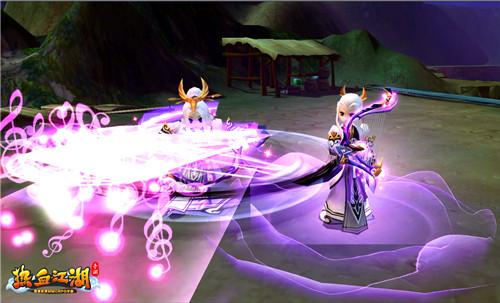 紫硕瑶琴变身后可通过释放音符来发动攻击。神兵技能“声振林木”、“拨弦转轴”都可对周围矩形内目标造成命中伤害,命中后并会回复主人10%的气血;“惊起梁尘”可对扇形内目标造成3次伤害,并击退敌人;大招“高山流水”则可对周围内目标造成6次伤害,并有50%的几率造成减速效果。即便再紧张惊险的局面,紫硕瑶琴也有从容不迫、优雅淡定的姿态,在刀光剑影的映衬下更显神奇。