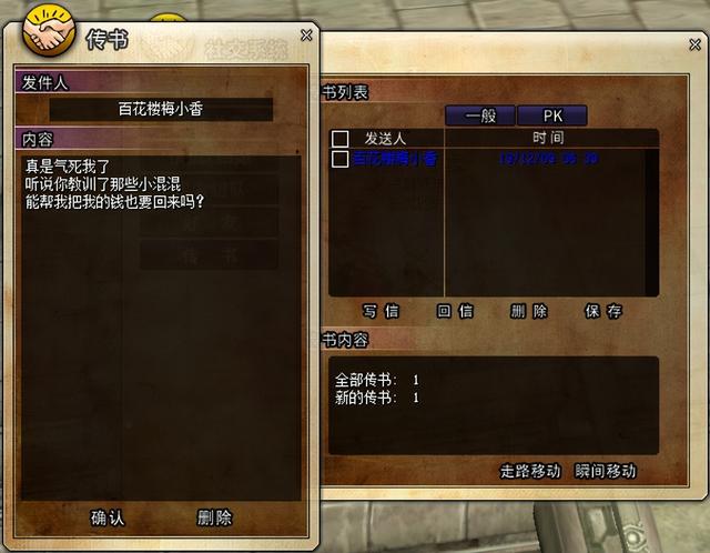 3.第三种就是商人首先说要看你装备,在交易上看,然后她说满意,但是这儿没钱要你去仓库,放个回城符到窗口 你不小心点接受,你的装备全到她那儿去了,你只得到一张回城F。