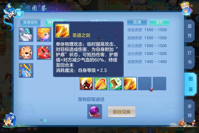 鼠剑仙是去年春节期间的生肖神兽,自身实力不容小觑,更关键的是具有轩辕剑灵这样高等级宠物才具有的"圣道之剑"技能,这个技能攻防一体,非常适合PK使用。