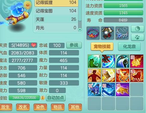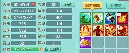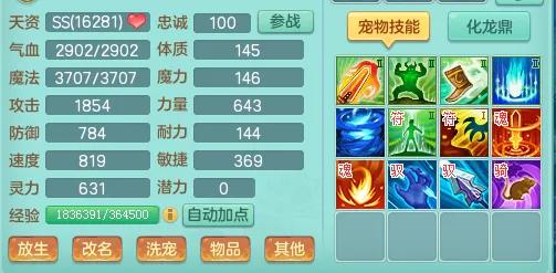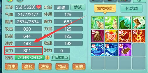2、面板灵力必须达到一定高度,比如99级600-650灵,109级650-700灵,119级700-750灵,129级750-800灵,140级及以上900灵。法宠的伤害一方面是看灵力,另一方面还得看技能书的加成。比如:高灵性、高震慑、高逆击等。