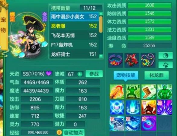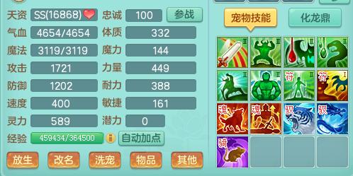 法宠要做到高速、暴力这两点,成长、资质不能差的同时,技能格子也要相对多一些!