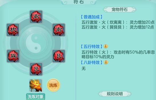 宠物符石:肯定选择6火,攻击时有50%几率忽略目标10%的灵力。