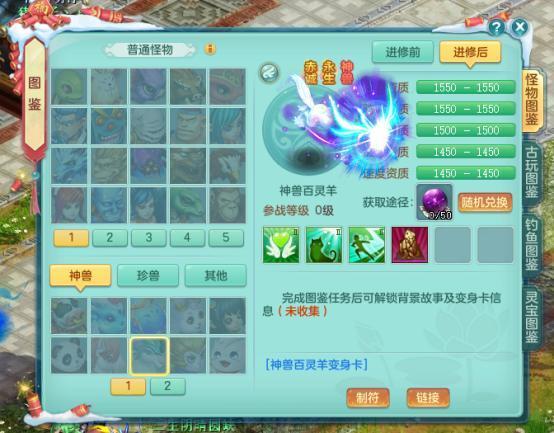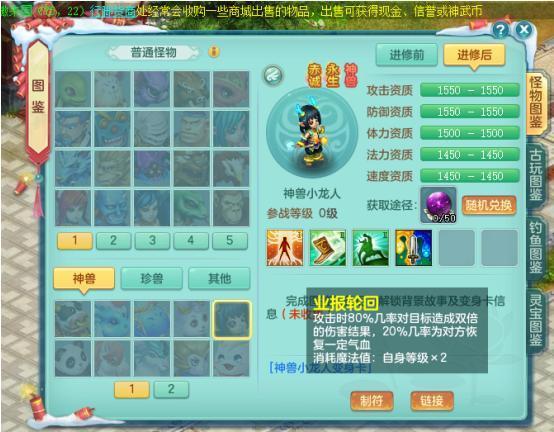神兽对wán家没有携带等级要求,而且寿命永远不会减少。神兽的资质、技能hé成长率均为固定,不受随机规则影响,可以使用“魔兽要诀”进行打书,改变神兽的技能。