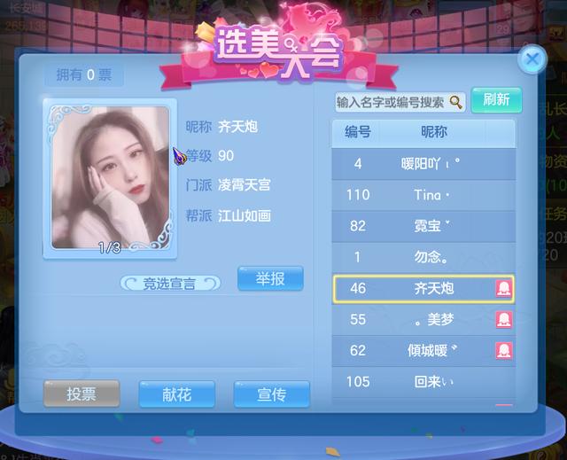 需要要注意的是,在投票区域,玩家是不能直接查看到自己获得了多少票数的,名字前面的编号也和排名无关。想知道获知自己和其他玩家究竟获得了多少票数,只能通过传闻来判断,在票数每达到一定数值时就会出现传闻,参与选美的小伙伴一定要多多关注!票数前十的玩家会进入最后的排行榜,而前三名会获得特殊聊天标识和气泡,最终的冠军还能额外获得特殊头像奖励,各位神武小姐姐可不要错过这个展示自己的舞台哦!