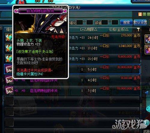 首先要去的地方当然就是巨龙了。每天一张票,攒一个月刷,运气好还是能爆到不少东西啦。另外巨龙BOSS也有几率爆到粉卡的,价格在几千万,并且附魔属性非常不错,还是比较好卖的,但是这个人品要求比较高,只能随缘啦。