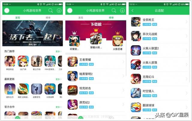在游戏应用市场的APP下载后,有很多是需要再次更新安装的,所以建议还是去官方下载,小鸡游戏手柄所适配的游戏在云适配里都可以找到。