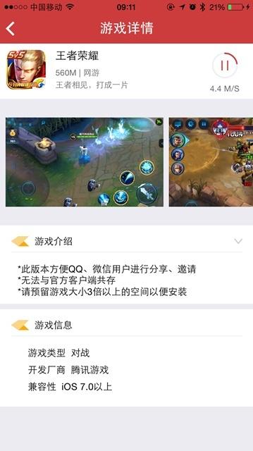 游戏体验的话就以目前最火热的“王者农药”来进行测试,在开始游戏前需要将原版的游戏进行卸载,并通过“左游游戏厅”下载专属版本才能启动手柄映射。每一款游戏在下载界面都有详细的提示信息,按照要求操作即可,而且要预留足够大的存储空间,向笔者这种乞丐版的iPhone6用起来就比较悲剧了。