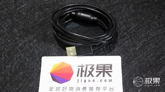 取出手柄就可以看见随手柄附送的连接线,线材使用了Micro USB接口,长度只有1米左右,正常充电什么的没有任何问题,如果想有线连接的话只能说是刚刚够用,线材上自带捆扎带和消磁环,材质和做工和上一代相比均有所提升。