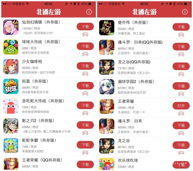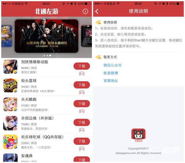 进入游戏大厅后,显示的内容非常简单,在直接在下载列表选择喜欢的游戏即可,除了软件右上方的使用说明外,并没有更多其他的设置,可能是iOS平台没有开放更多的权限,所以功能方面比较简单。