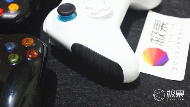 游戏手柄两侧设计有防滑橡胶,大约覆盖了手柄侧方2/3的面积,大面积的橡胶材质增大了握持时手柄与手心的摩擦力。