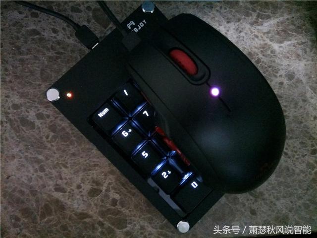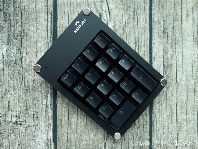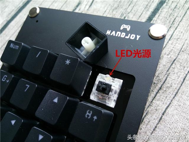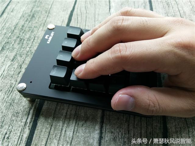 黑色幻影乍一看和普通的数字键盘一样,但是上边的按键布局又不相同,特意为游戏操作按键专门设计。黑色幻影采用机械键盘黑轴配置,试着敲打声音清脆,键帽拆装很简单,没有专用工具用手指即可取下,方便用户清洁或者更换。在键轴的上方设有LED光源,说明黑色幻影支持背光功能。